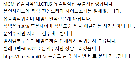 MGM 유출픽작업,LOTUS 유출픽작업 후불제진행합니다.